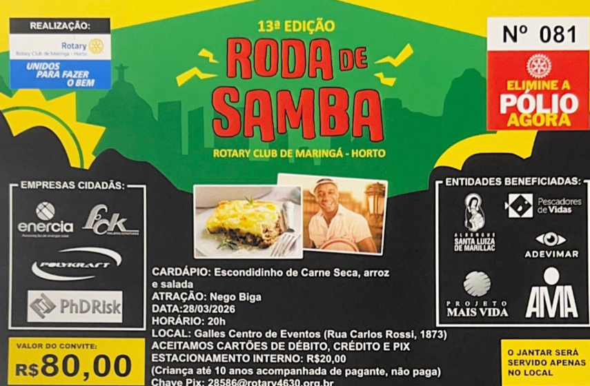 Uma noite especial de música, alegria e solidariedade organizada pelo Rotary Club de Maringá – Horto, que irá beneficiar diversas entidades da nossa cidade, entre elas a AMA.