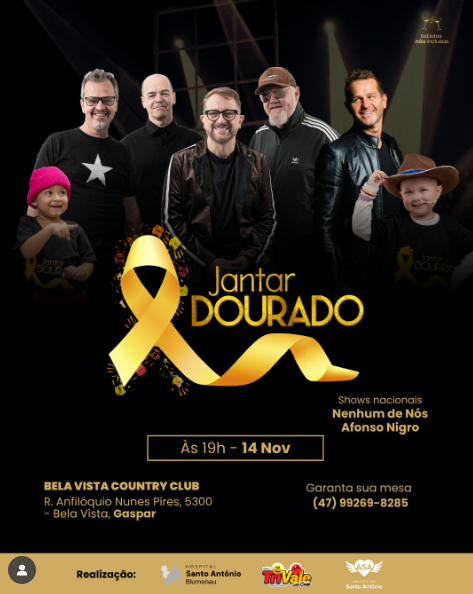 No dia 14 de novembro, a partir das 19h, o Hospital Santo Antônio realiza a 4ª edição do Jantar Dourado! O evento beneficente mistura solidariedade, música e gastronomia para ajudar as crianças e adolescentes em tratamento contra o câncer.