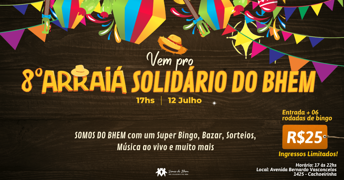 Dia 12/07 será nosso *8º ARRAIÁ SOLIDÁRIO COMEMORANDO 12 ANOS DE SOMOS DO BHEM* . Trem Bão demais sô!!!