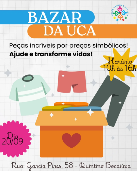 Já pode anotar na agenda: 20 de setembro é dia de bazar na ONG!
