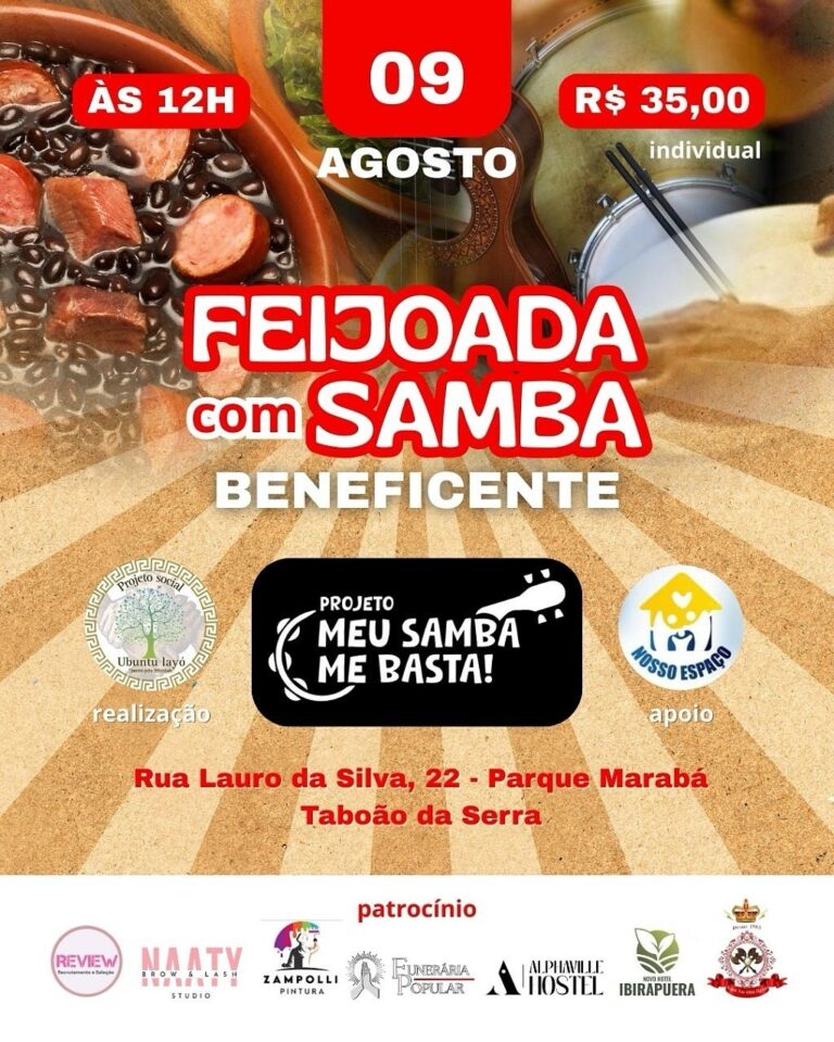Além de saborear uma feijoada caprichada, preparada com muito carinho, você também curte um show gratuito com o grupo Meu Samba Me Basta, que vai embalar a tarde com muito samba e energia boa!