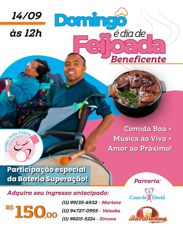 Prepare-se para uma tarde deliciosa e cheia de solidariedade! No dia 14/09, das 12h às 18h, tem Feijoada Beneficente da Casa de David no tradicional Bar Brahma, com música ao vivo e muito sabor!
