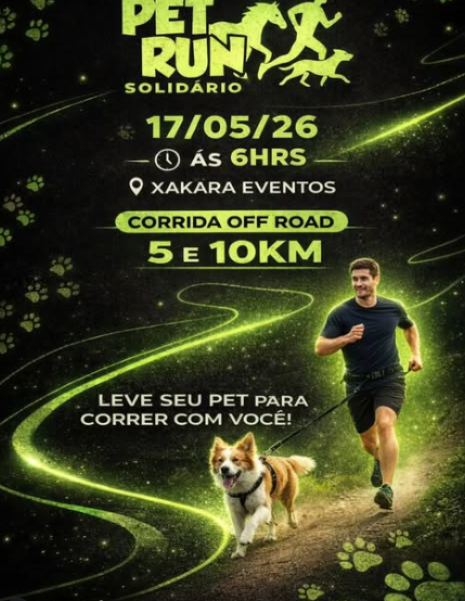 A 2ª Pet Run Solidária é um evento que une esporte, natureza e amor pelos animais. A corrida acontece no dia 17 de maio de 2026, na Xakara Eventos, Londrina – PR com percursos de 5 km e 10 km, permitindo que os participantes corram ou caminhem ao lado de seus pets. Organizado pela Sociedade de Apoio Defesa e Integração Animal, o evento tem como objetivo incentivar a prática esportiva, promover a conscientização sobre a causa animal e arrecadar recursos para o resgate e cuidado de animais vítimas de maus-tratos e abandono.